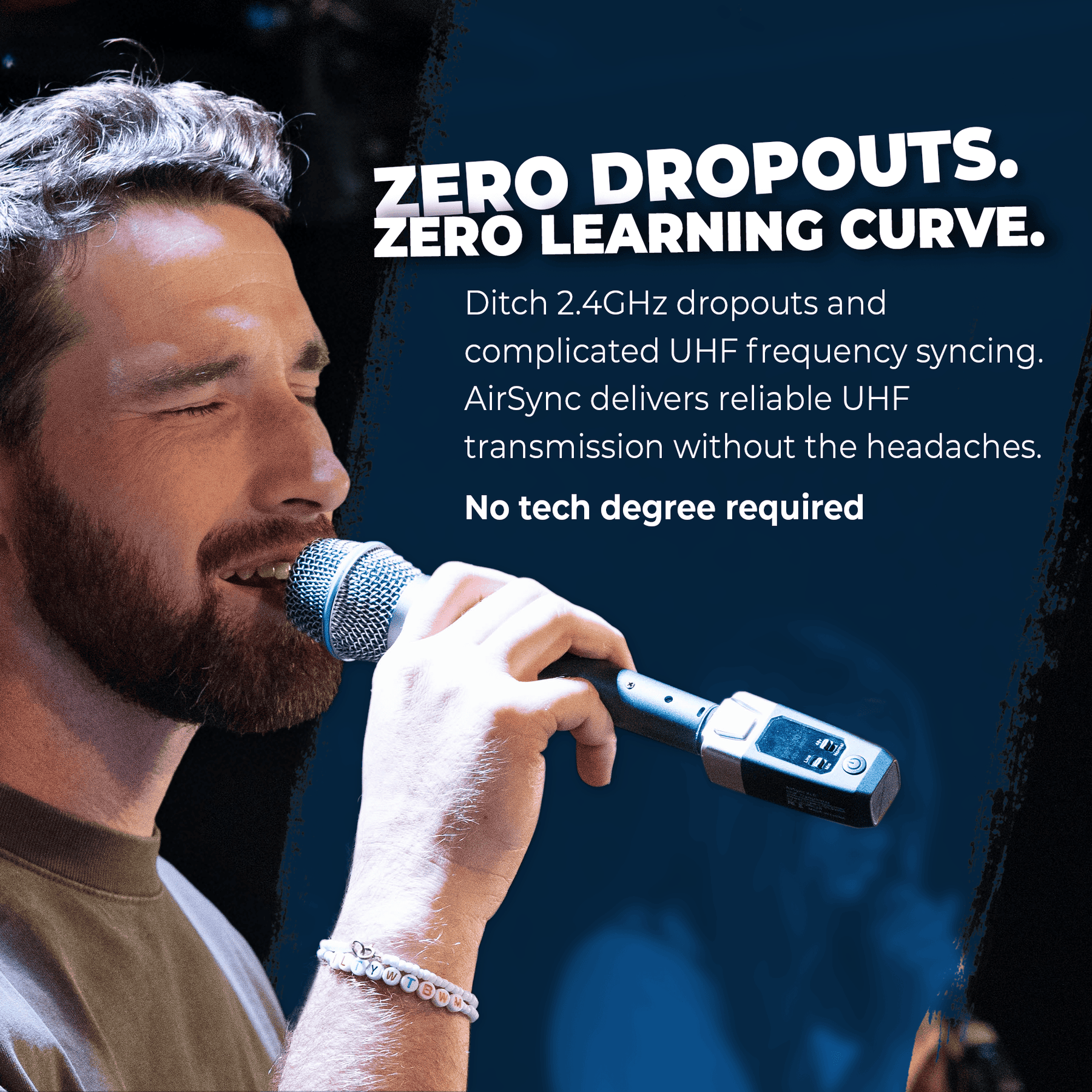 Gen 2 of our AirSync XLR transforms any XLR microphone or powered speaker into a reliable wireless system. Forget tangled cables, tripping hazards, and limited movement. With crystal-clear sound, instant setup, and rock-solid performance, you’ll experience the freedom to move, perform, and connect with your audience like never before.